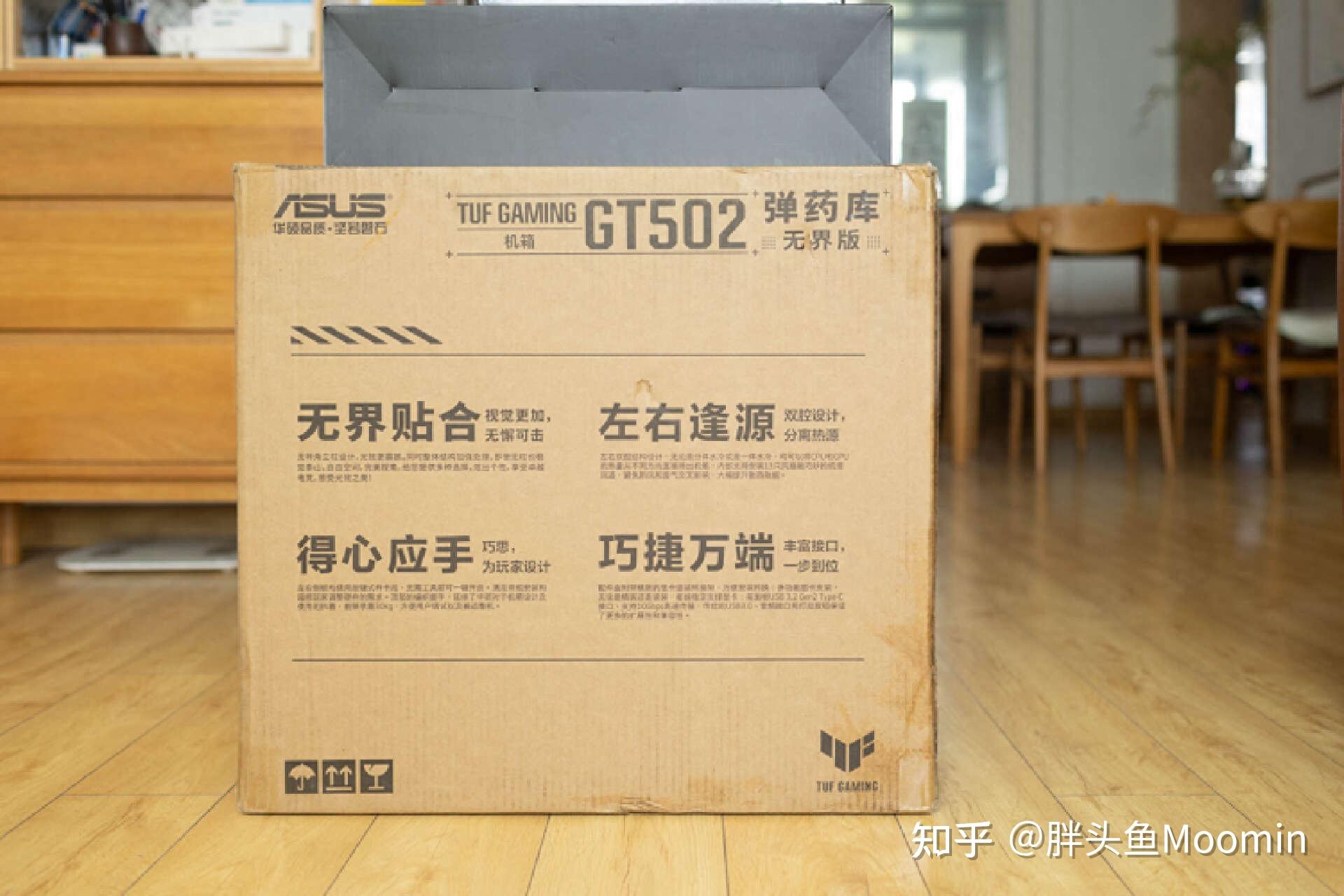 TUF GT502彈藥庫無界版的包裝還是一貫的樸素,厚實的環保紙箱上可以看到ASUS標識和一些產品特性介紹,主打一個樸實無華。