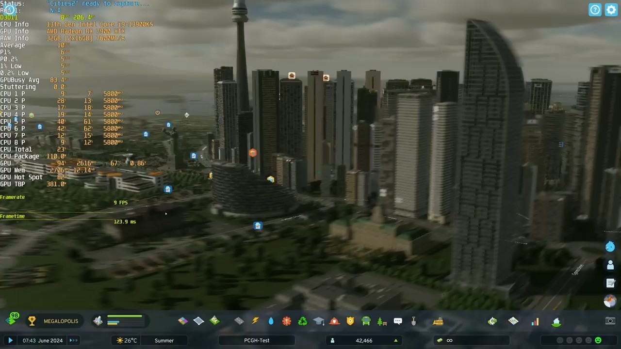 德国媒体PCGamesHardware拿到了游戏,分享了一些跑分。CPU为i9 13900KS,《城市:天际线2》在A卡旗舰RX 7900XTX上的表现惨不忍睹,4K/高画质下,这张卡只能跑7-12FPS。
