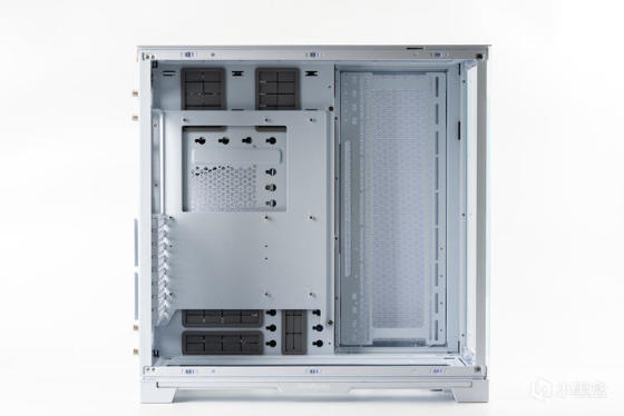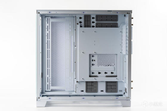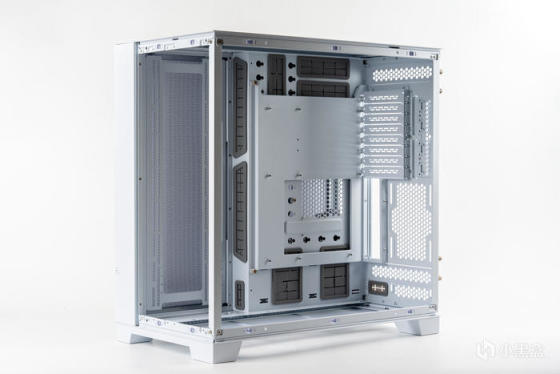 整机无侧透钢化玻璃展示,O11D EVO XL 大包豪斯前面的立柱也只要拆卸上下4颗螺丝就可以随意拆卸,成为无立柱的全视海景房