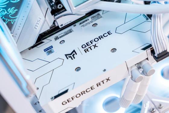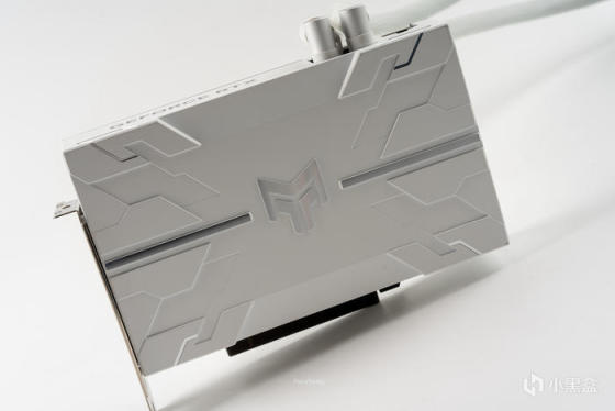 白色哑光漆面的全金属背板,中间辅以金属大师logo和GEFORCE RTX,以及金属大师的线条