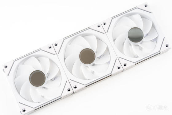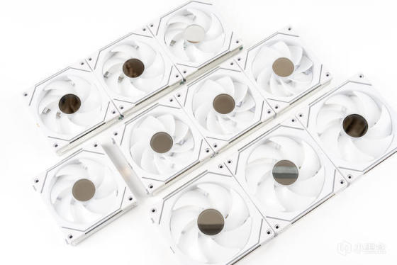 3把SL-INF 120幻境反叶积木拼接效果,风扇的参数为120x122x25mm,2100RPM下最大提供63.6CFM风量和2.02mmH2O风压,噪声值32dB(A)