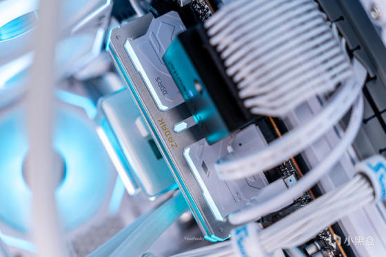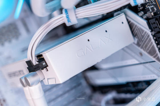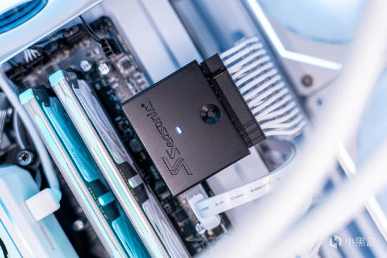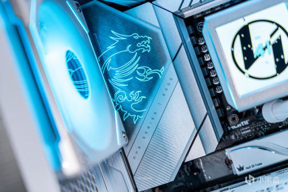 固态硬盘选用了影驰的HOF EXTREME30 PCIE4.0 1TB ,五年质保支持个人送保,纯白定制的HOF OF FAME 曲镜白泳散热器,全铝CNC工艺和曲面设计,不仅散热优秀且马甲曲线灵动感十足