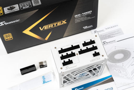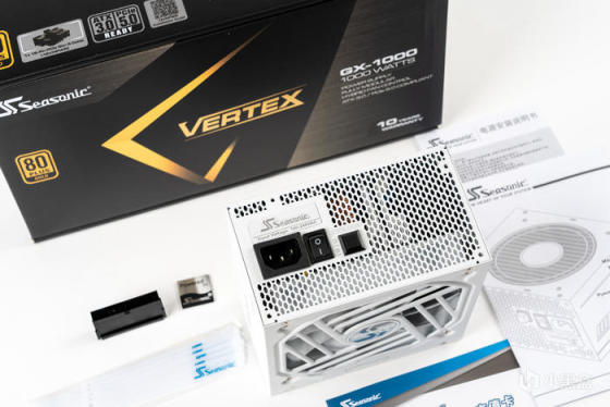尾部接口的海韵Vertex峰睿GX1000 WHITE白色限定版电源