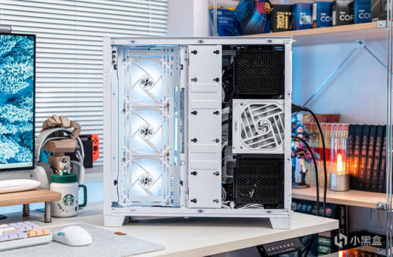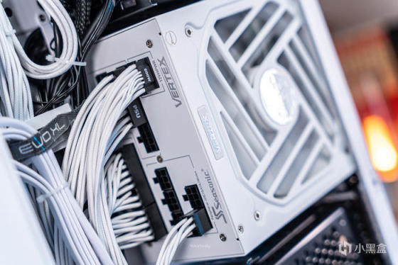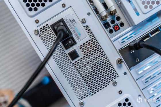 侧板的网孔散热正好对应左侧的冷排位置和右侧的电源以及两个热插拔硬盘架,电源这次使用的是海韵Vertex峰睿GX1000白色限定版