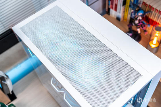 顶部的面板也是全铝合金材质,并大面积网孔增强散热