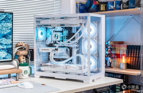 在配置方面,微星新的MPG Z790 EDGE TI MAX WIFI主板在保持90A 16+1+1的供电规模以及第三代钛金电感、5条M.2支持的同时,最重要的升级在于支持更高频率的内存、5条M.2的第一条已支持PCIE5.0 X4 M.2协议、还有WIFI7高通无线网卡的加入,另外还有4个SATA增加为6个。影驰RTX 4090 金属大师 AIO OC显卡不仅以纯白的360冷排进行散热,更以纯白色的一体化CNC金属装甲作为本体,而显卡则采用了18+4相高规格全数字供电和14层PCB,以及600W接口的12VHPWR接口为显卡提供450W(MAX510W)的TGP功率,这样冷排的散热也可以在海景房中更好的布局散热。强悍的13900K+4090的配置使用了海韵Vertex GX1000 White纯白ATX3.0压纹线电源,这款海韵中端电源突出的特点上面主要有235%瞬时峰值功率超越intel ATX3.0标准、搭载智能IC保护控制、采用更安全的SDP智能双重保护、中低负载智能启停的数字 IC 温控技术配合135mm FDB动态液压轴承风扇转速曲线更静音。固态硬盘是使用8通道群联PS5018-E18主控的影驰HOF EXTREME30 PCIE4.0 1TB ,它采用了全铝CNC曲面工艺纯白定制的曲镜白泳散热器,五年质保支持个人送保。内存是白色的宇瞻ZADARK DDR5 6000灯条内存,采用它主要是其支持intel XMP与AMD EXPO双认证,以及整体白色的颜值和灯效支持。