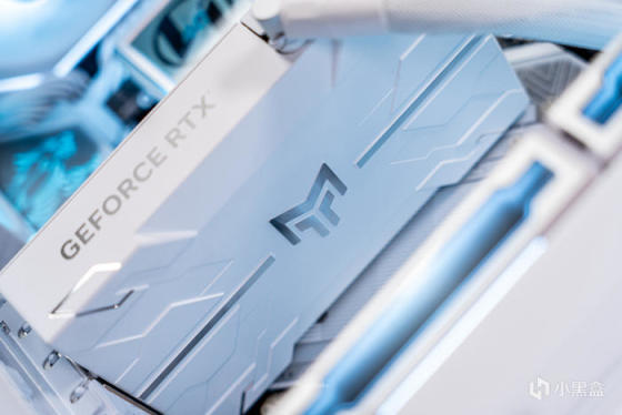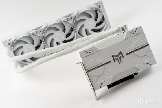 RTX4090 金属大师 AIO OC 显卡全貌,白色360冷排配上纯白全金属的显卡