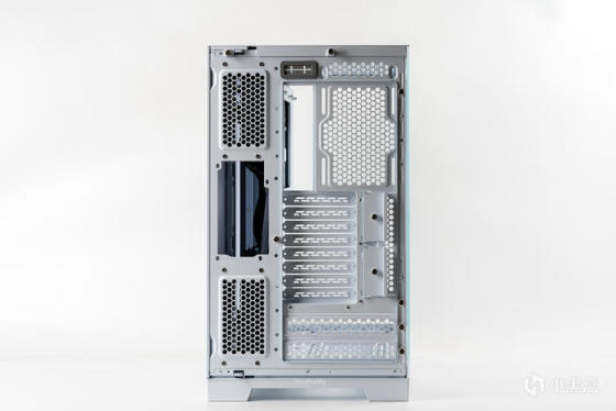 背板是全铝合金背板,两侧都有网孔增强散热,且比O11D XL侧盖开孔率大14%散热性能更强