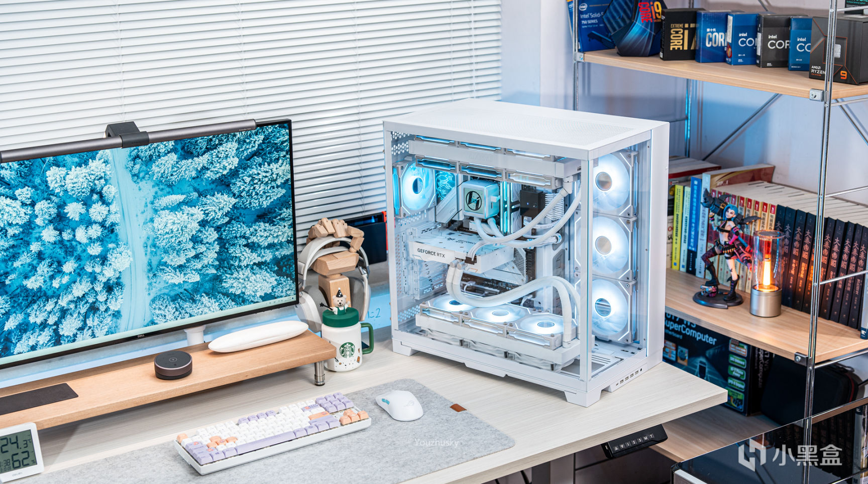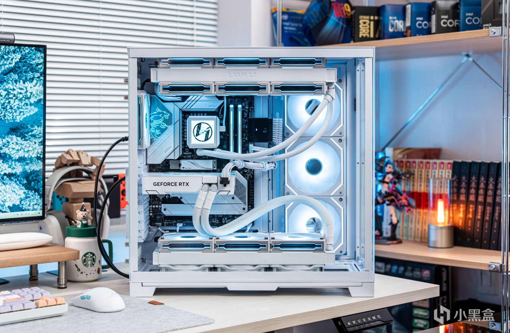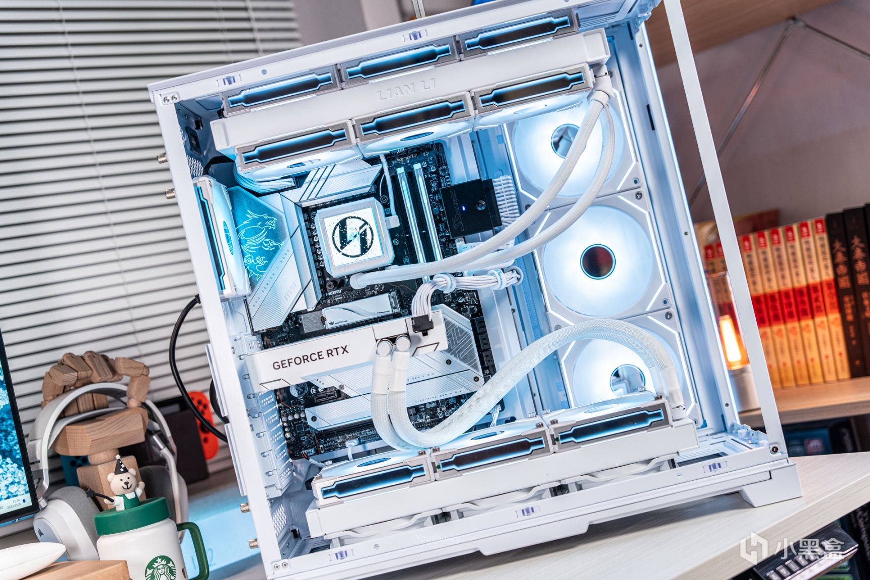 这次带来的是联力全新更大体积的O11D EVO XL 白色主题的装机展示,使用的联力最新的带屏幕水冷极圈二代LCD幻境版360,平台为13900K+微星Z790刀锋TI MAX主板+影驰4090金属大师AIO OC+海韵峰睿VERTEX GX1000WHITE,一款纯白超大号海景房主机。联力全新的O11D 包豪斯 EVO XL,更大的体积带来更广阔的硬件兼容性和更进一步的模块化设计,尺寸为522x304x532mm,个头正常不过宽度比较宽毕竟双仓结构,但它依然保留了可以进行双形态切换的特点,桌面上左置右置皆可随需摆放,而且还可以将独立的主板托板上下移动,来达到上下冷排更多扩展与兼容的特点。在兼容性上,280mm宽度的EATX主板是必须的,电源最长220mm,风扇冷排兼容性是升级最大的点,可以在顶部、侧面、底部全部兼容420冷排,在不移动托盘的默认模式下可以让冷排和风扇的总厚度支持到顶部最多82mm、底部最多90mm,显卡的长度最大460mm,塔式风冷可以最高167mm,扩展槽也具有8个,妥妥的巨型机柜工作站。此次使用的散热器是联力极圈二代LCD白色360幻境水冷,是联力第一款有2.88寸IPS屏幕的AIO水冷散热器,可以让用户能够以极具创意的方式显示出影像或视频,还可以实时显示系统信息,并特别采用Asetek最新第八代水泵设计,幻境款更是使用了联力的积木风扇三代SL-INF。