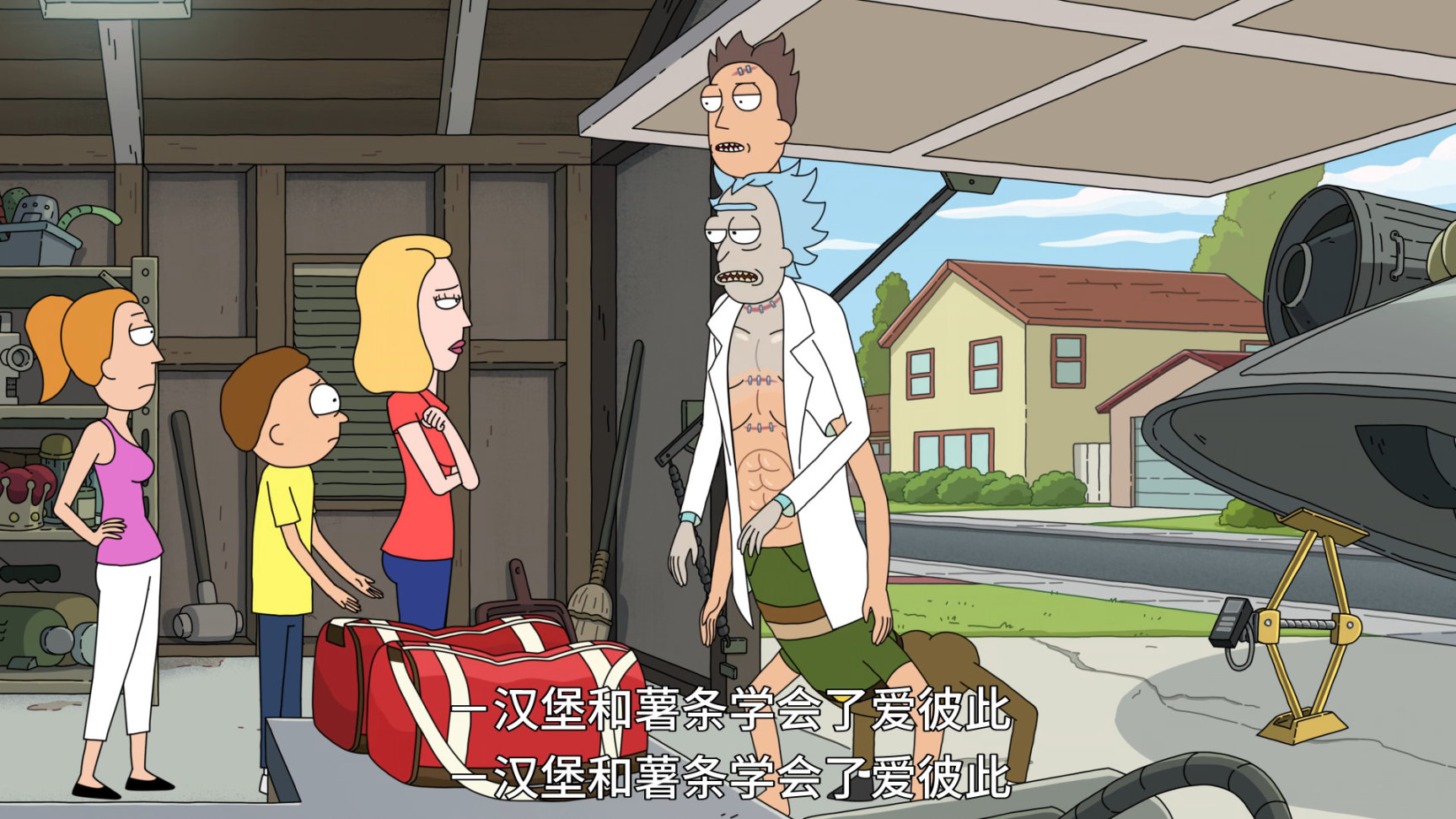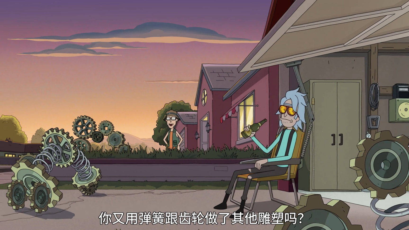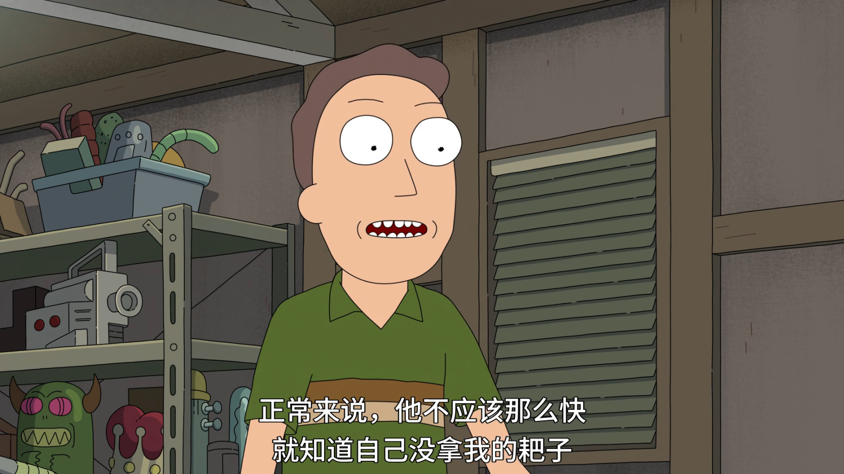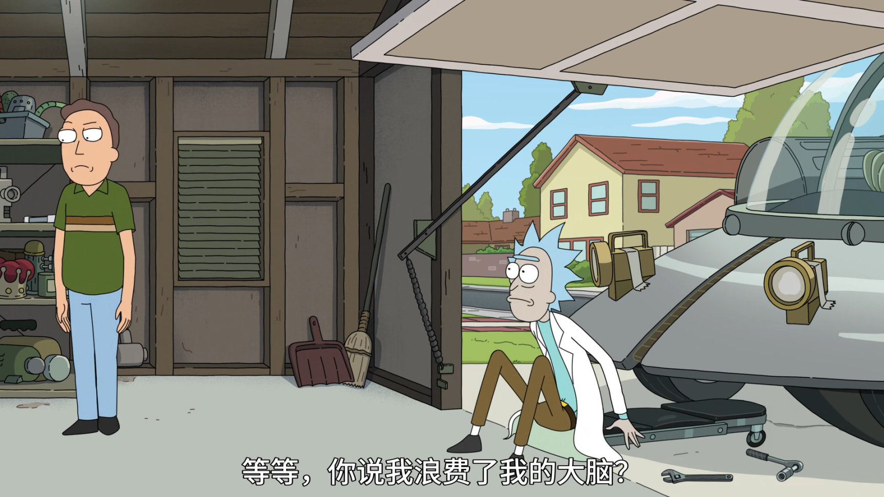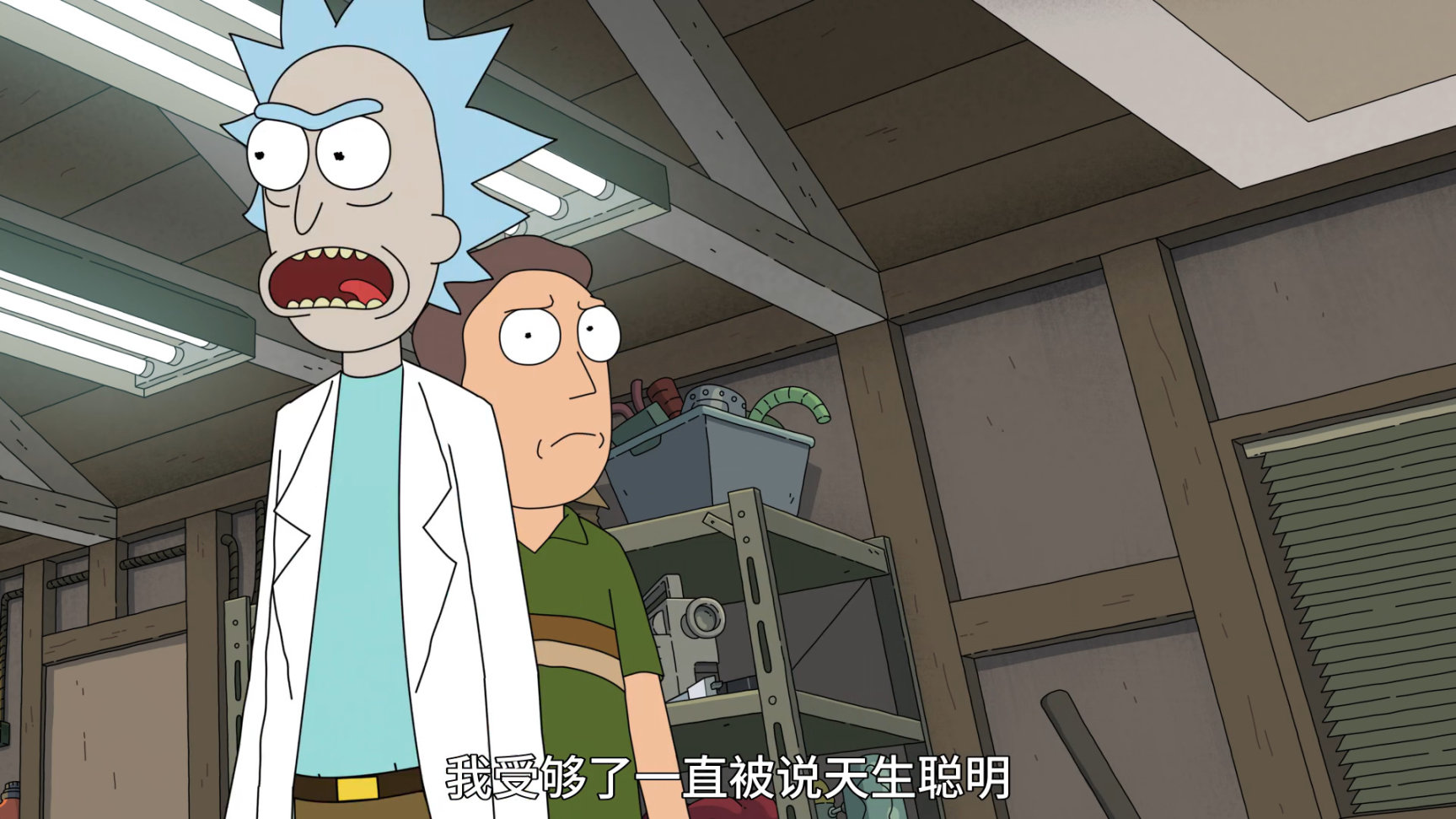 本集開頭,傑瑞跟姥爺說鄰居Gene把咱家的耙子偷了,讓姥爺幫自己要回來,姥爺直接扔了把槍過去,讓傑瑞直接"搞定"鄰居.傑瑞對姥爺的武力做法不滿意,還嘲諷姥爺浪費了自己的大腦,如果自己能像姥爺一樣天生聰明就好了.這話直接引發瑞克的不滿,於是姥爺直接把兩人的思維意識互換,來證明天才不是天生的,你Loser傑瑞是你自己造成的.