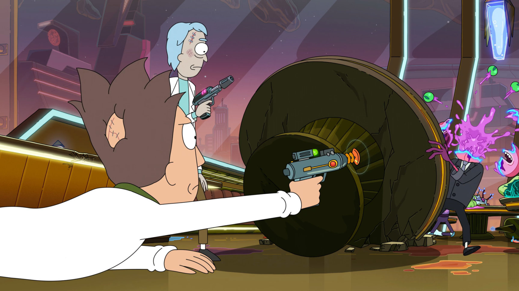 兩人共同操作飛船去找莫蒂,因爲兩人的思維意識仍然混亂,黑幫老大也看出來瑞克的狀態下降了,於是開槍準備幹掉瑞克一行人.瑞克和傑瑞在戰鬥中也慢慢開始消除隔閡,開始接受對方.
