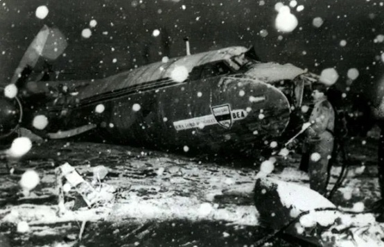 此時的慕尼黑機場籠罩在暴風雪之中,能見度極低,在惡劣的天氣下,加完油的飛機兩次起飛都沒有成功,當機長詹姆斯·泰恩於下午3點04分決定第三次嘗試起飛時,由於飛機速度不足未能爬升而導致突然失速,衝出跑道後先撞毀機場圍欄,失控越過一條馬路後,左翼撞及附近一間民房,機身斷爲兩截,左邊機身撞向一棵樹,右邊機身撞向一輛裝滿了輪胎和燃料的卡車,隨即解體併發生爆炸。