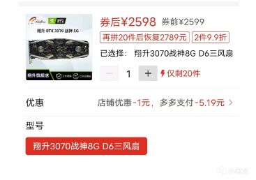 RTX 3070 品牌:拼多多/翔升/战神 现售价:2598元 历史最低价:2549元(某东/翔升/战神)