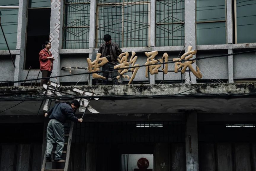 拿影片中一个电影院被改造成主角马哲工作室的画面举例,警察在施工,电影二字被拆解落下,随即不久后其中一个嫌疑人跳楼自杀。