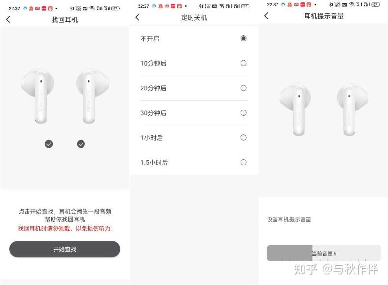 找不到耳机的时候可以APP里的定位找回耳机功能,耳机会用最大声音播放音频。另外对于戴耳机睡觉的我来说,定时关机功能真的是非常实用,不用再戴一整晚把电耗干了。除此之外,耳机的提示音也是可以调节音量的调最低相当于关了,适合不喜欢提示音的朋友。