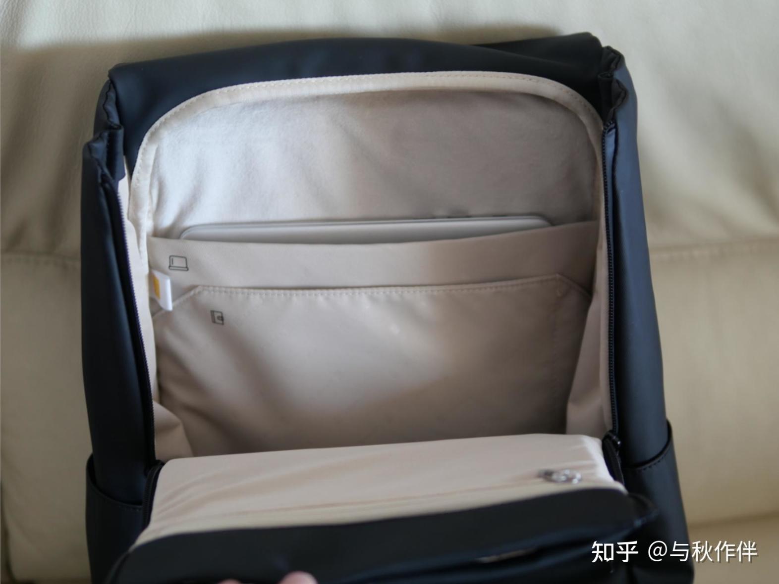 说起来,这款包的定位应该是带电脑隔层的通勤休闲包,不过对于笔记本的保护一点不怠慢,两面都是植绒布面非常柔软,完全不用担心划伤笔记本的A面和D面,而且空间足够,最大15.6寸的笔记本也是可以装下的。