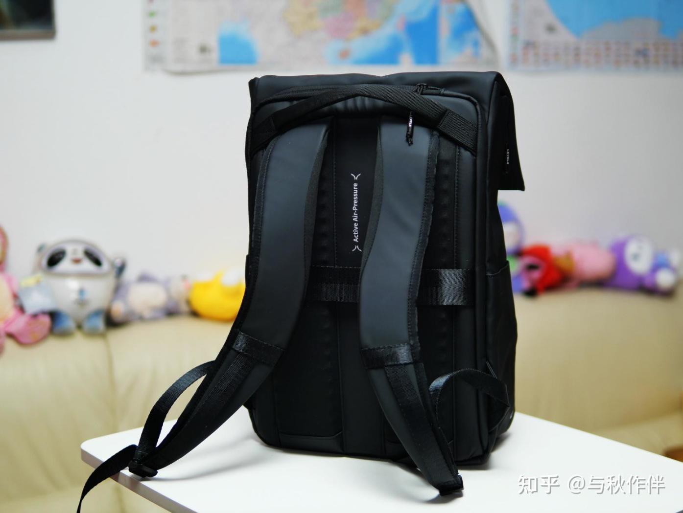 背部的支撑很不错,是一体成型的,S型宽肩带形状类似柔软的波浪的,加上中间空出来的一条,背上以后透气性很不错,基本背个大半天后背都不会出汗的。肩带内部是硅胶填充,软硬适中,背重的东西也不会感觉特别压肩头。
