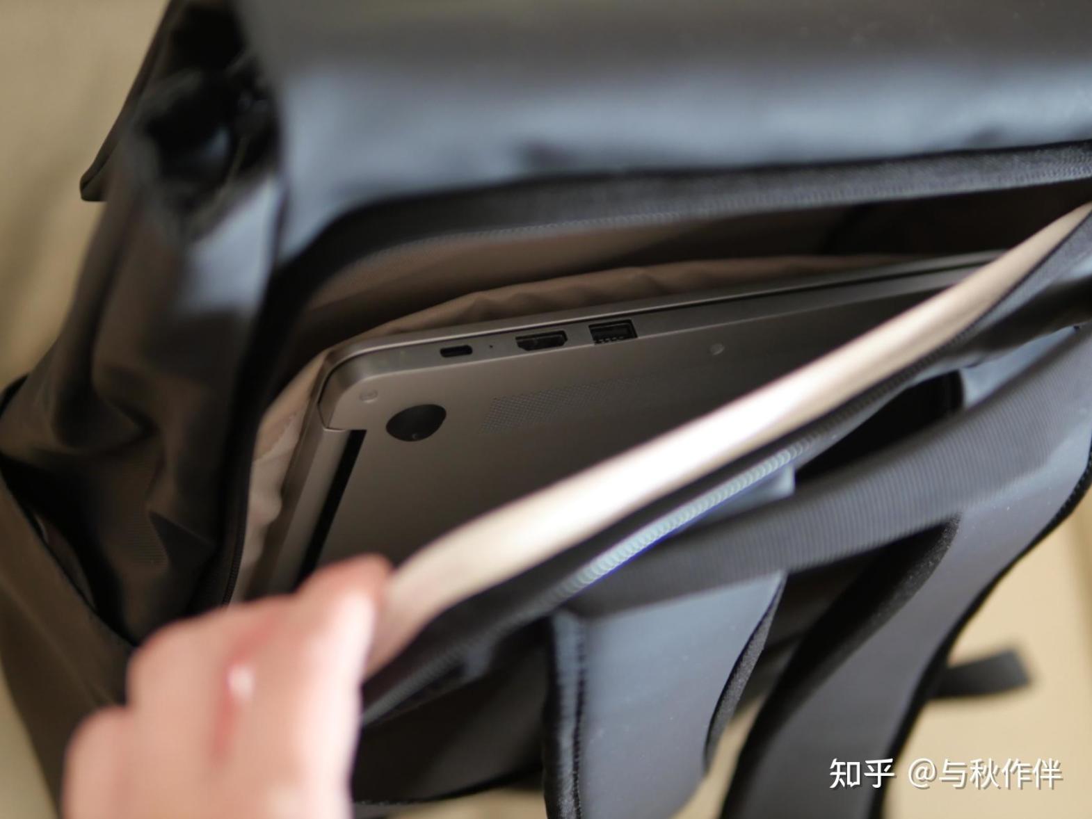 另外,背包后面还有一个专门的L型拉锁,可以从后面把笔记本抽出来,这样就不用打开整个背包盖了。