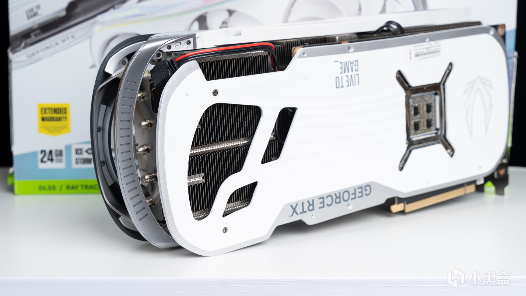 背板的尾部具有大面积不规则区域镂空,可以明显改善显卡散热风道,增强其散热性能。