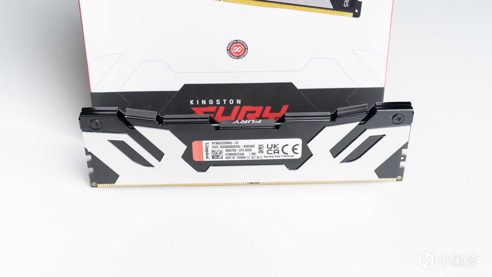 FURY Renegade DDR5 6000这款内存采用了银色和黑色进行撞色,并对称设计形成其散热片,中间从上到下分别是FURY、KINGSTON、FURY(拉丝处理)以及RENEGADE LOGO,右侧则是不太显眼的DDR5 LOGO,风格还是挺硬朗的。