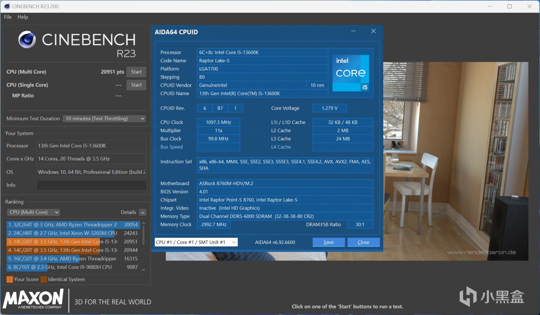 由于主板PL1功耗限制在90W,CPU长时间全负载运行是不合适的(影响CPU性能发挥),而PL2功耗上限还算高,所以看起来CINEBENCH R23单轮跑分和主流搭配的Z690/Z790差距并不大,不过毕竟B760M-HDV/M.2这款板子的定位就是入门级,主打性价比的白色颜值,加上90%的玩家日常都不会把CPU推到100%使用率上,所以用13600K来搭配它问题也不大。