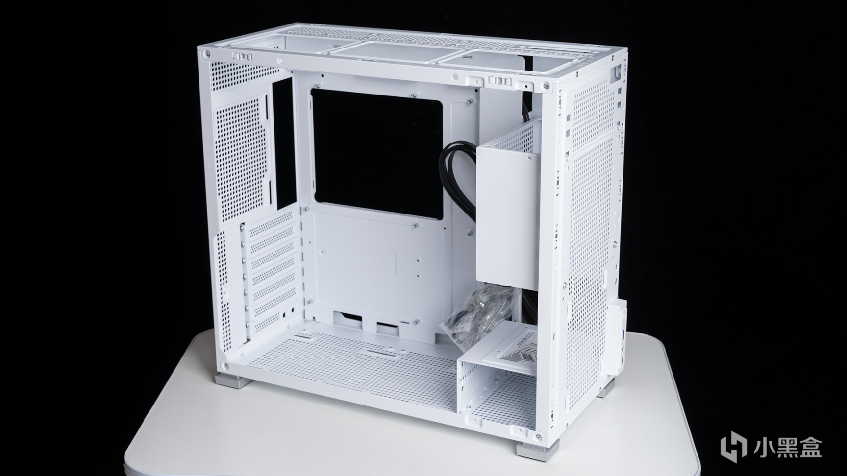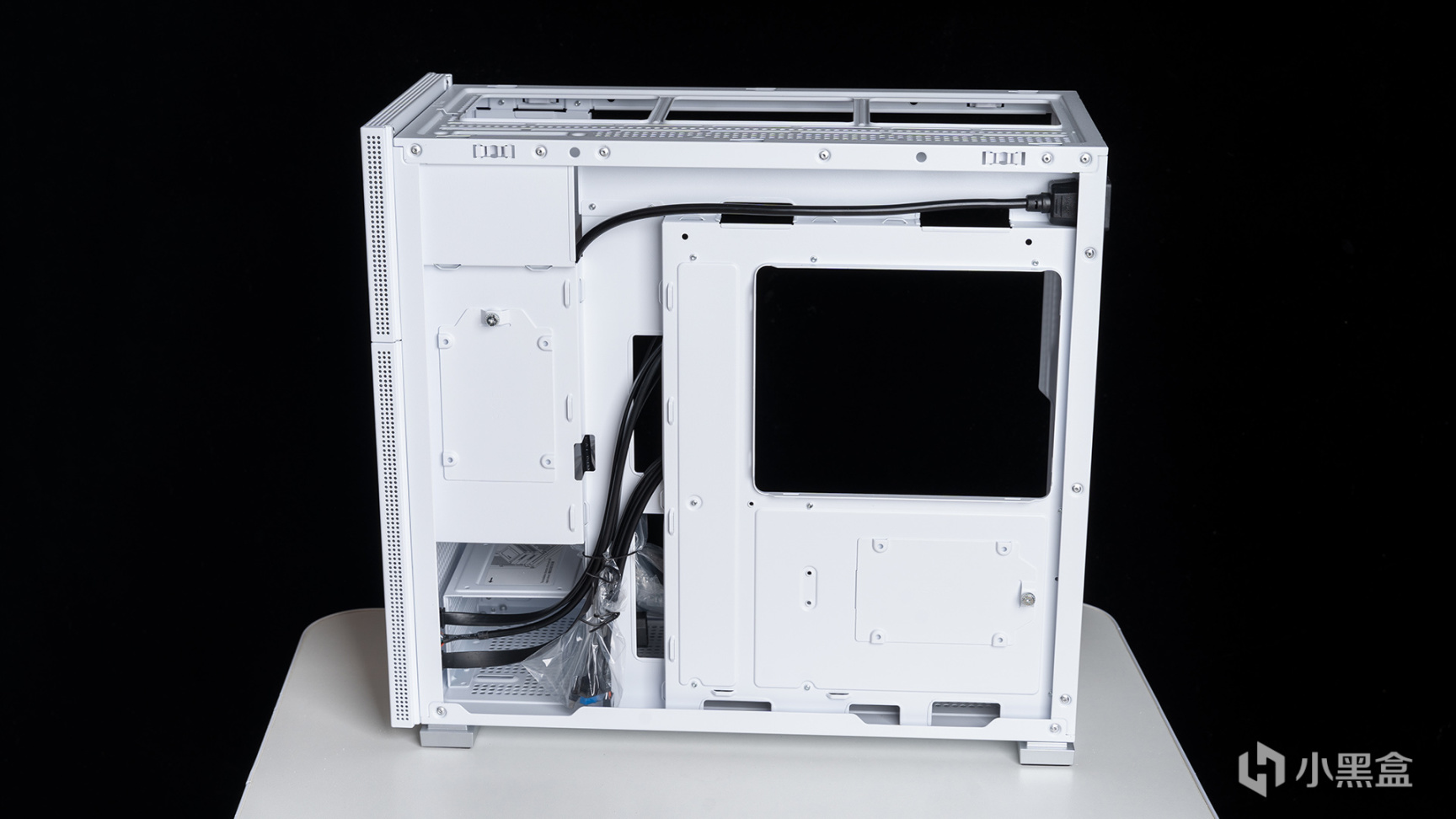 背部留有充裕的理线槽空间,扎带装置多,背部支持两个SSD挂载,能满足绝大数用户,采用手拧螺丝免工具设计,D41在底部还增设了3.5英寸HDD硬盘架,能多挂载两个HDD。