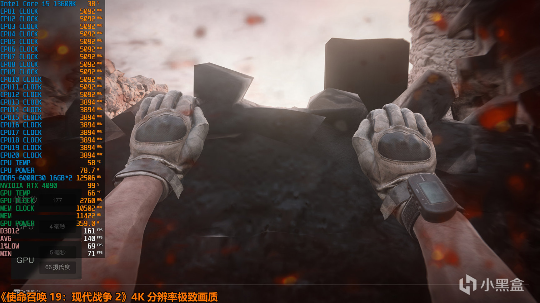 13600K+RTX 4090 AMP月白运行《使命召唤19:现代战争2》4K分辨率极致画质平均帧数为140fps