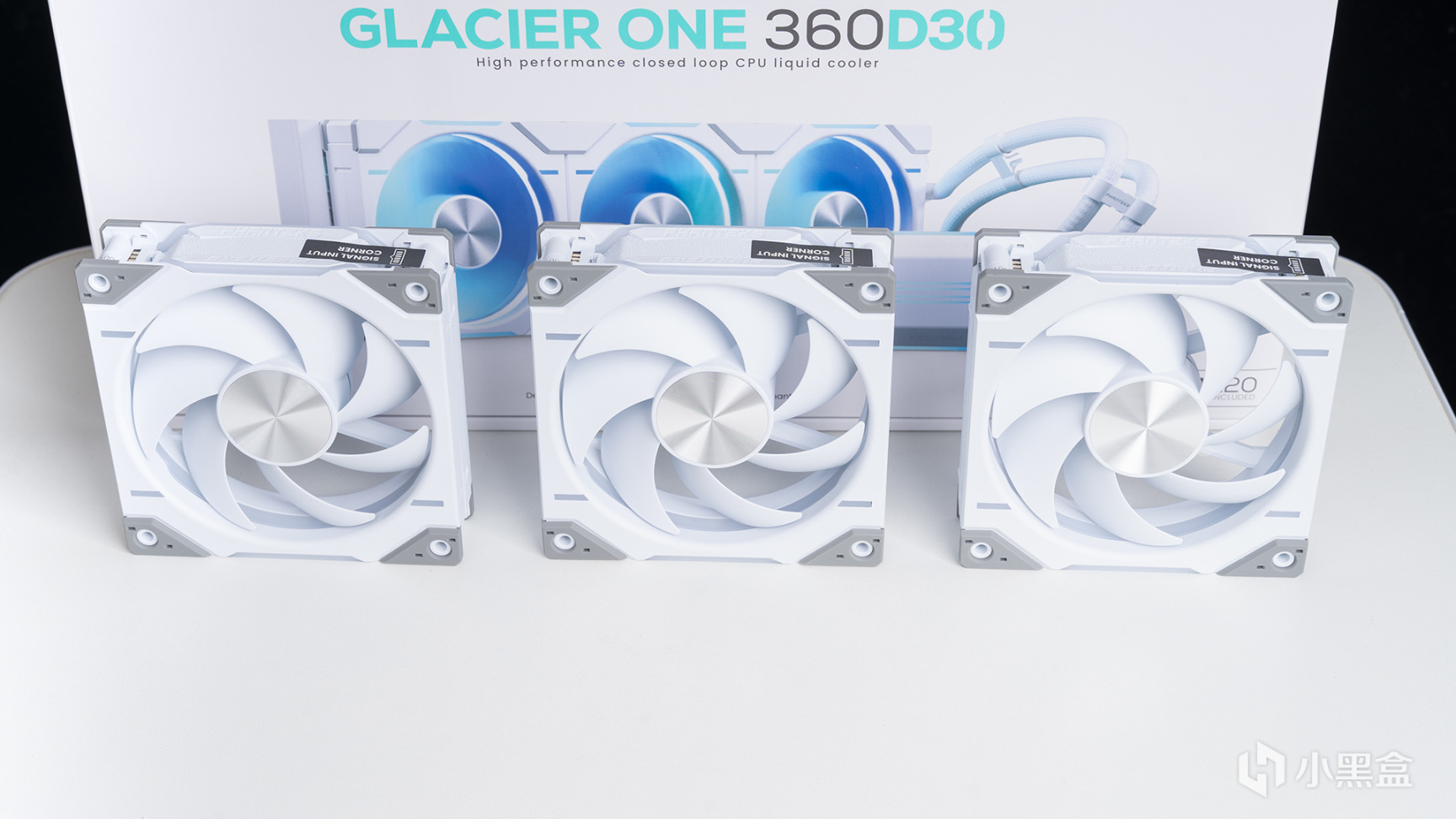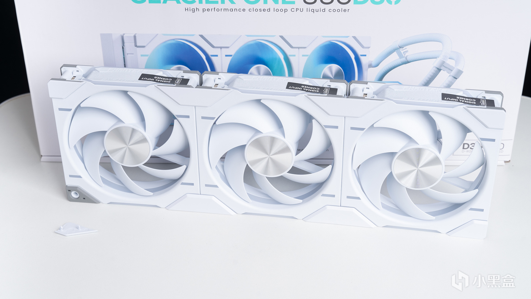 冰灵D30 360采用了三个D30积木型散热风扇,实际上它就是T30的简化改版,同样也是30mm厚度,风扇最大转速可达到2000±10%RPM,在扇叶和边框处均设计有ARGB灯效。