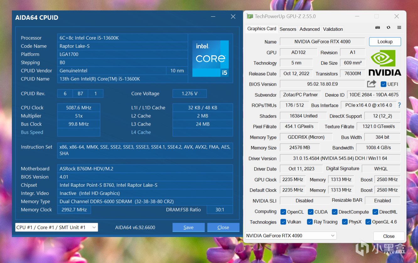 本次测试硬件和使用环境,CPU就是默认状态下的Intel Core i5-13600K,首先第一步就是开启XMP配置达成DDR5 6000C32双通道,操作系统是最新Windows 11 22H2,搭载NVIDIA驱动是545.84 Game Ready WHQL,并在BIOS中开启Resizable BAR技术提升一些显卡性能。