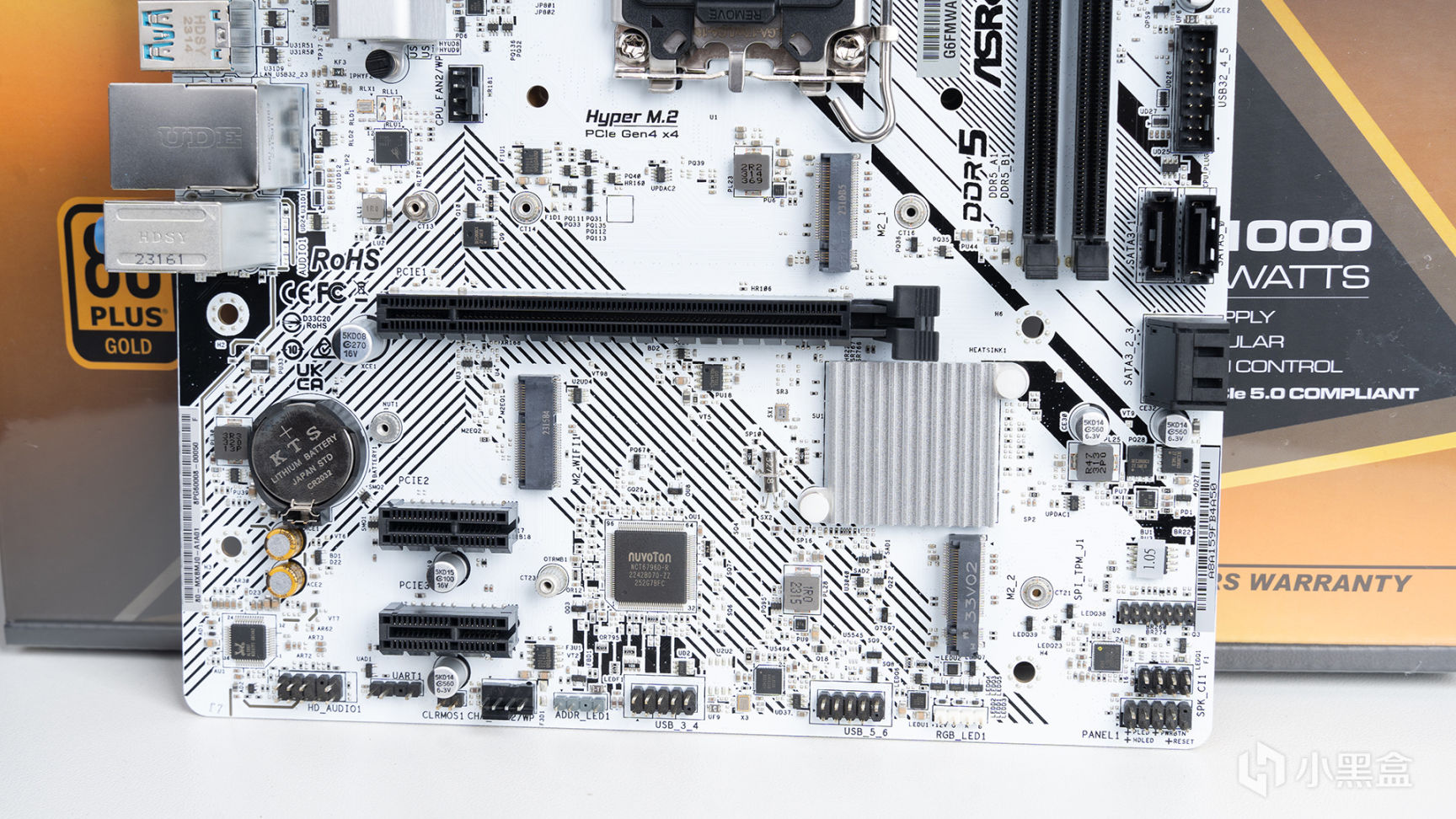 搭配13600K的主板选择了华擎全新推出的B760M-HDV/M.2 D5,它可能是目前最有性价比的白色DDR5主板,京东最新双11价格仅679元,主板自然是采用纯白PCB打造,并且拥有3*5V 3pin+1*12V 4pin的RGB接针组合,也就是能满足追求白色高颜值、灯光秀需求的玩家。风扇接口数量是四个,只比千元级MATX主板少一个。
