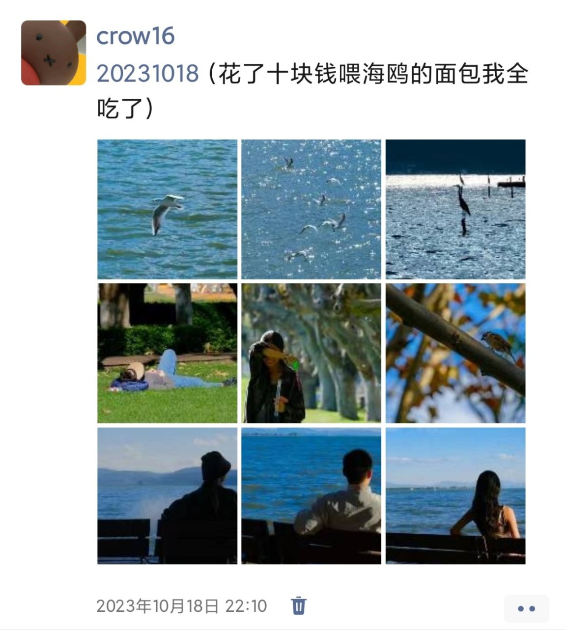 滇池我們淺淺走了一下午,在海埂大壩下車(可以看到紅嘴鷗),大壩有很多攬客拍喂海鷗照片的,不是很推薦哈,他們會模仿海鷗叫來吸引海鷗過來,這個時候可以趁機拿着麪包喂海鷗。