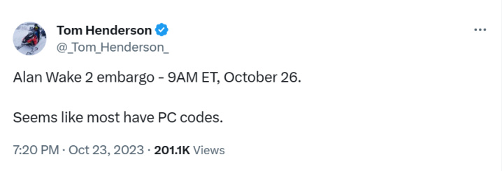 知名游戏业内爆料人Tom Henderson 透露《心灵杀手2》全球媒体评分将在北京时间10月26日晚10点解禁。Tom Henderson称大多数测评为PC版本。