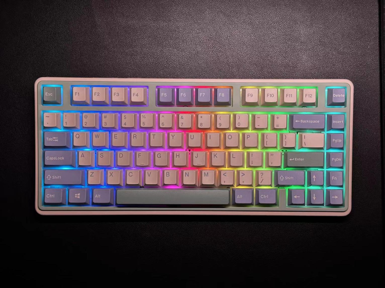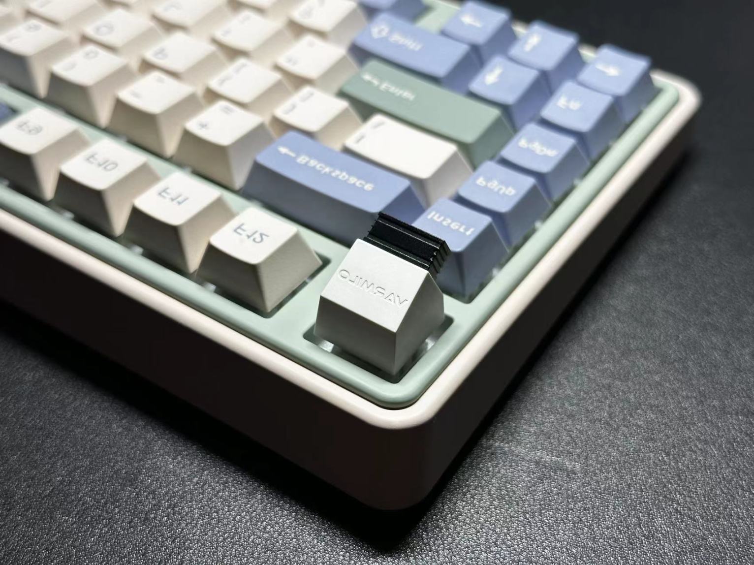 迷你洛75如果命名一样为75%配列的小键盘,75%配列对于不是特别需要数字区的用户来说,能够达到使用需求的同时还节约有桌面的占用空间,以及方便携带。而这把迷你洛75的外壳虽然采用塑料材质,但是整体的质感为类肤,使用起来是非常细腻光滑的。