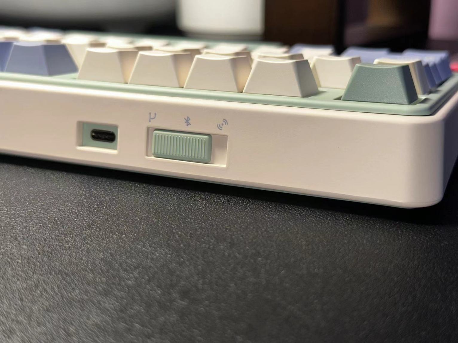 迷你洛75的切换按键和Type-c口都设计在了键盘的左上角,切换键做了防滑纹路,在使用时还是挺方便的。