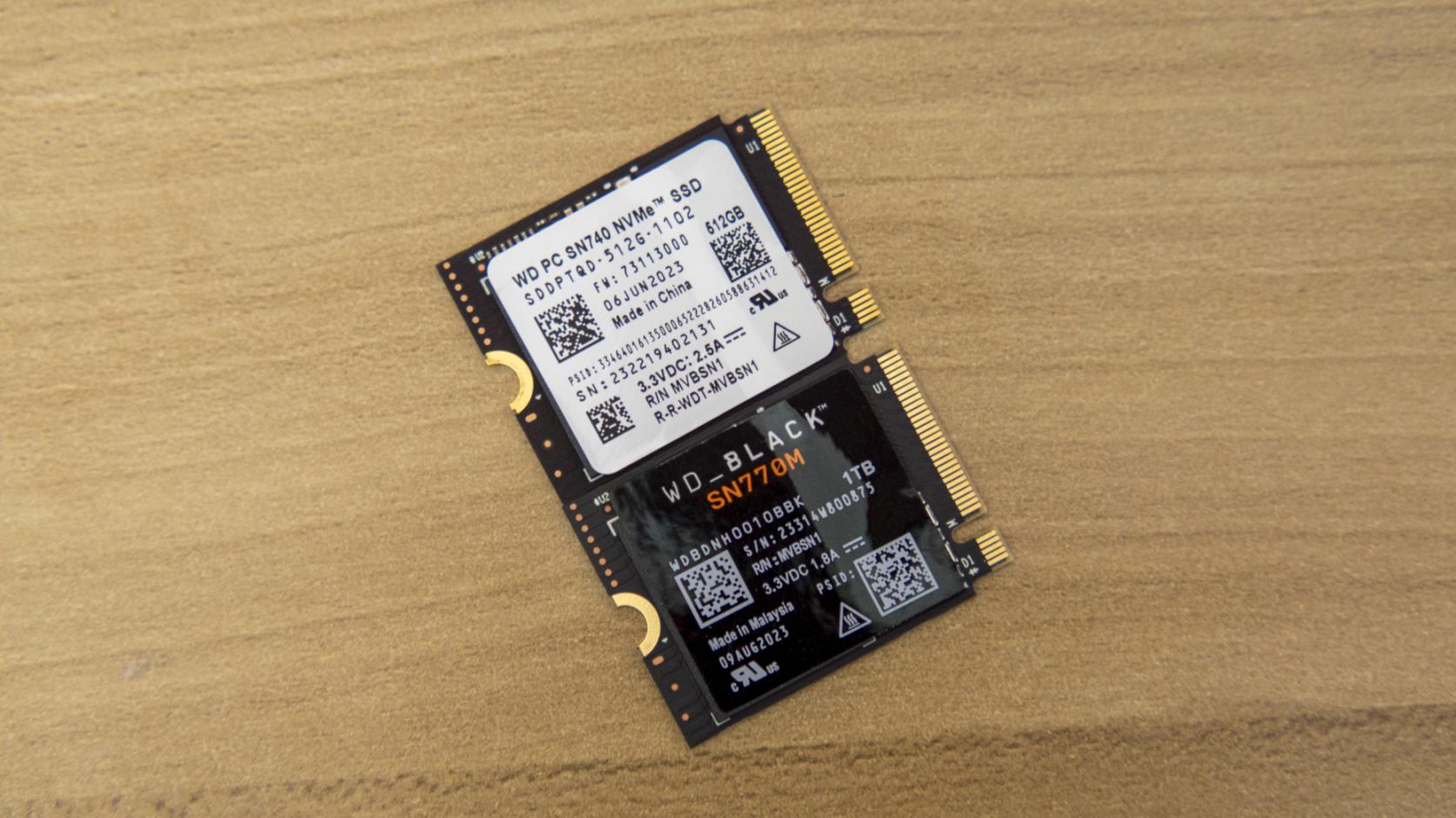 我这次用的SN770M,据说是SN740的零售版本。跟之前SN720是SN750的OEM版本一样,ROG掌机里用的SN740,是SN770M的OEM版本。两张盘看上去就像孪生兄弟,撕了贴纸你都分不出来哪个是哪个。