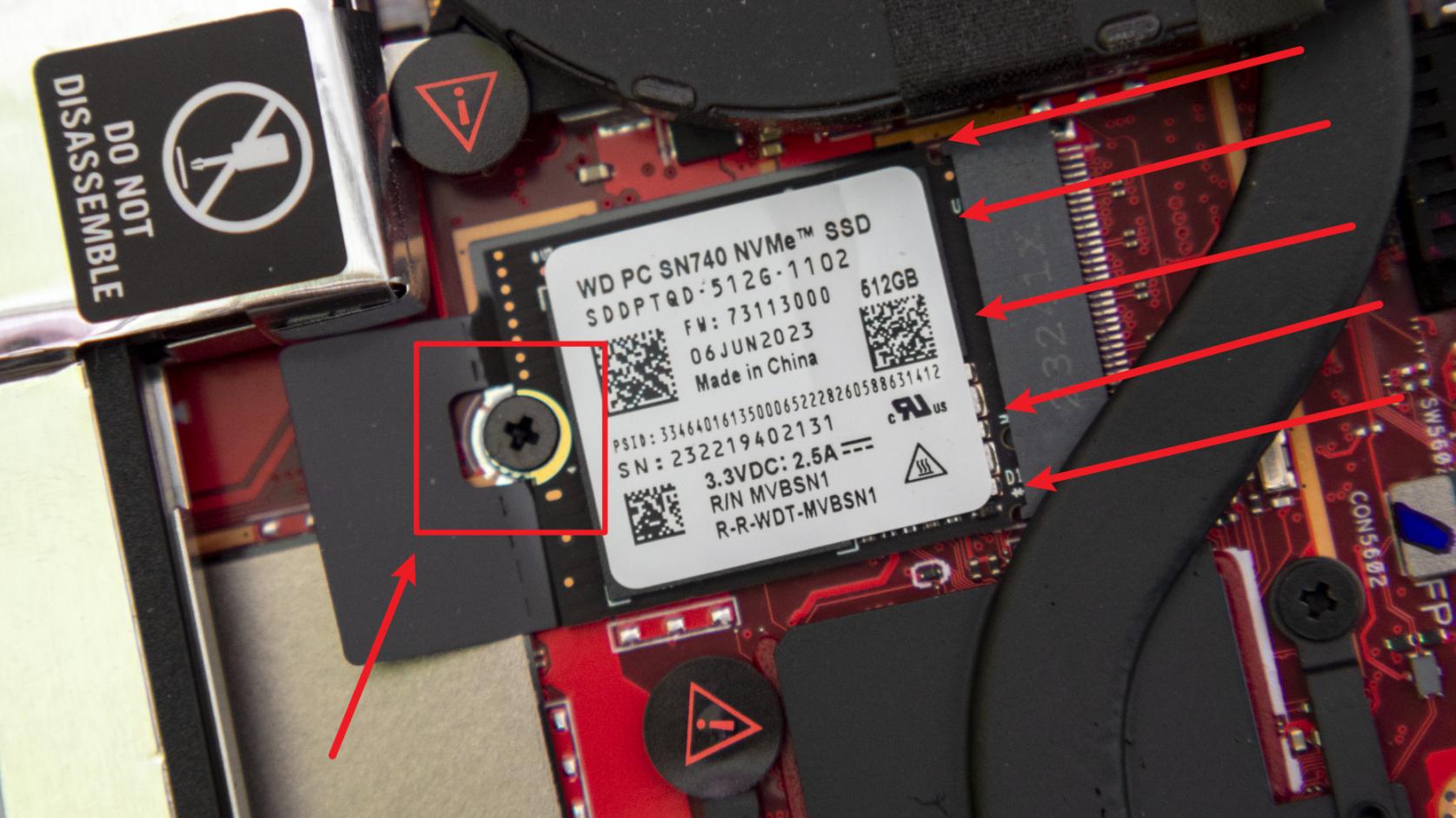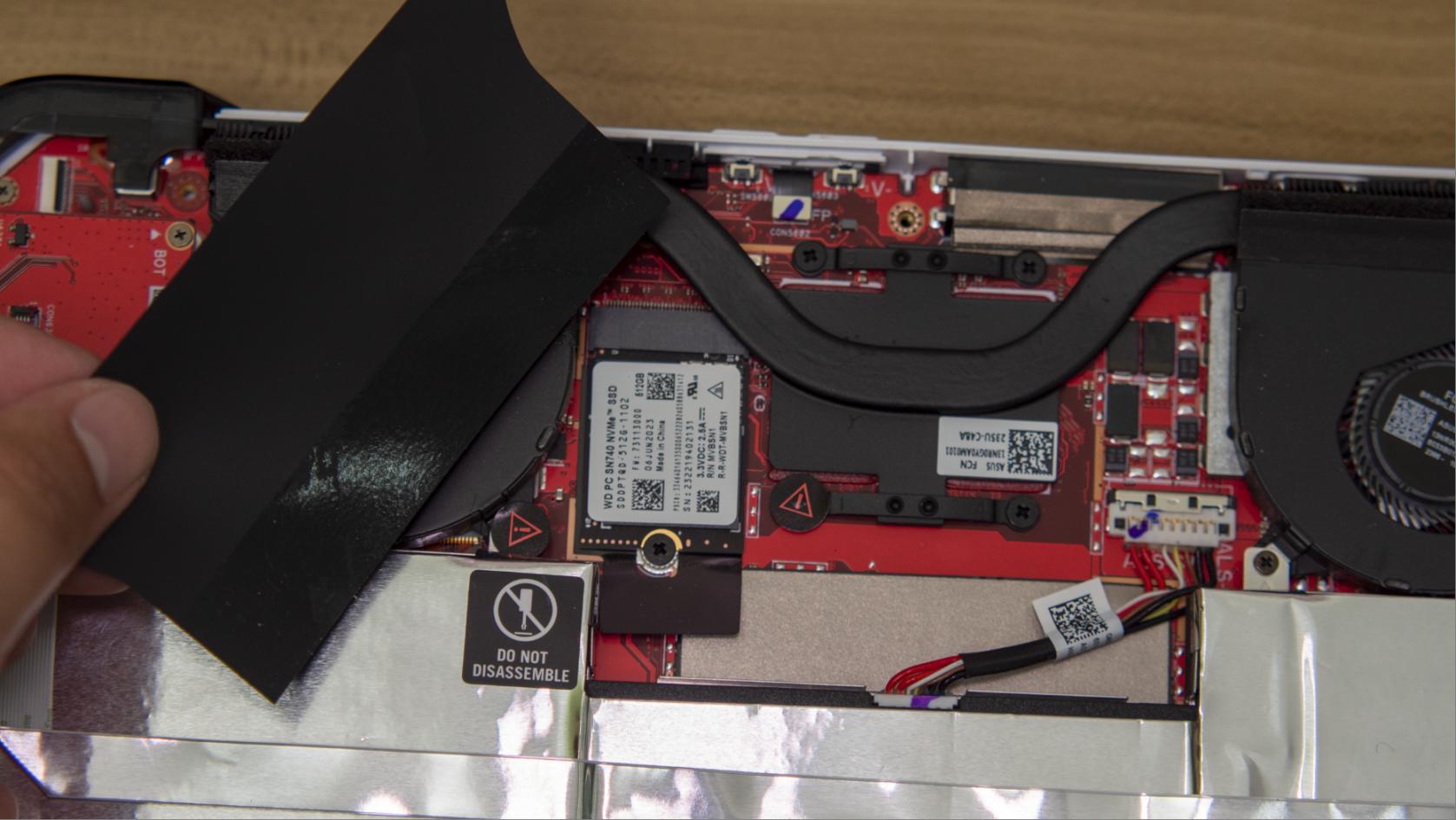 接着撕开中间的屏蔽贴纸,就能看到原装的2230硬盘位了。