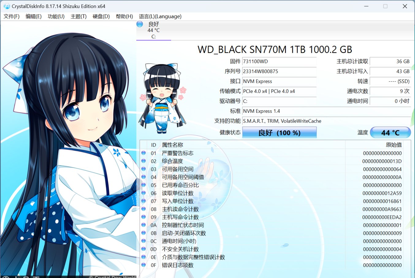打开任务管理器,已经读到硬盘了,1T的SN770M。