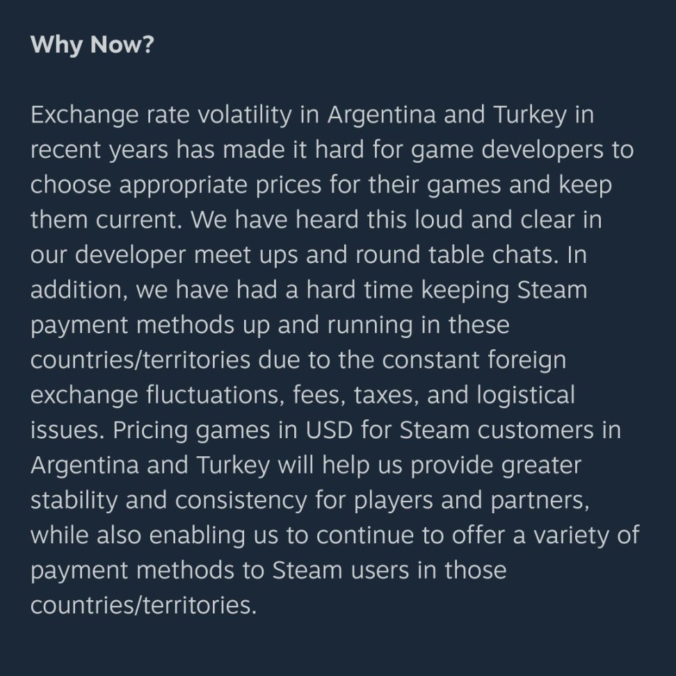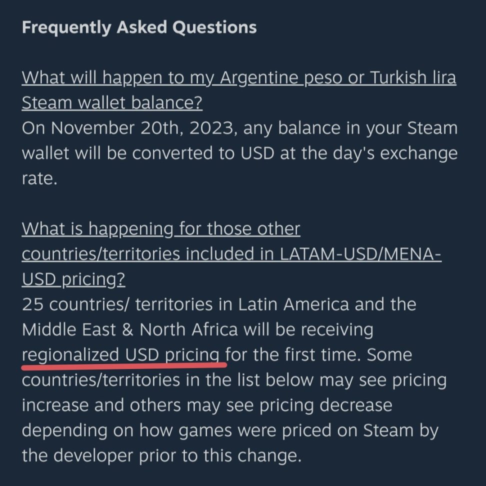 雖然目前沒有找到官方對“regionalized USD pricing”的解釋,但是我合理猜想這個政策的真正含義是將購買結算貨幣換爲美元,但定價也按匯率改變爲對應低價區定價。畢竟此舉措的出發點也是爲了解決匯率波動導致的定價難問題。