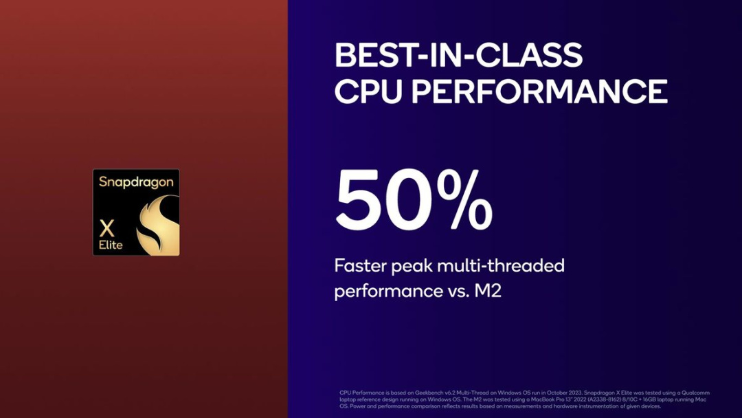 高通表示其多核性能比Apple的M2處理器快50%。