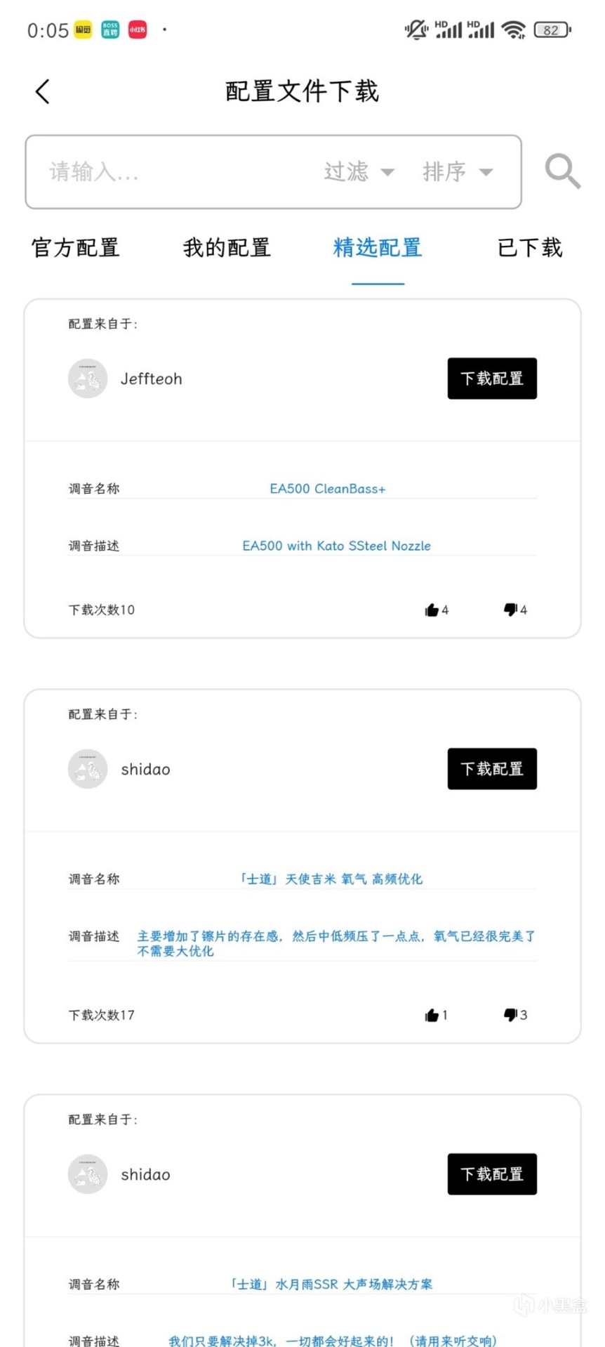DSP线这个类目,其实很多家厂商都有这个类别,但为啥我说水月雨这款很有意思呢,那就是因为其与其他家的DSP不同,其采用的是联网的设计,你可以按照不同的耳机进行调校,然后将其上传到云端,等到其他同样使用这款耳机的小伙伴们看见之后,就可以很轻松的下载然后加载到自己的线材中,这使得无限拓展成为了可能,就像steam中的游戏只要开了创意工坊,那么具体变成什么样子那就由不得你了,水月雨这根线材也是这么个情况,虽然官方只对于自家的耳机进行了调校,但在云端,你除了可以看到水月雨的好基友—天使吉米以外,你也可以看到很多其他的厂商耳机,例如兴戈的EA500,它也有网友上传了相关的调校数据,完全可以下载之后进行使用。