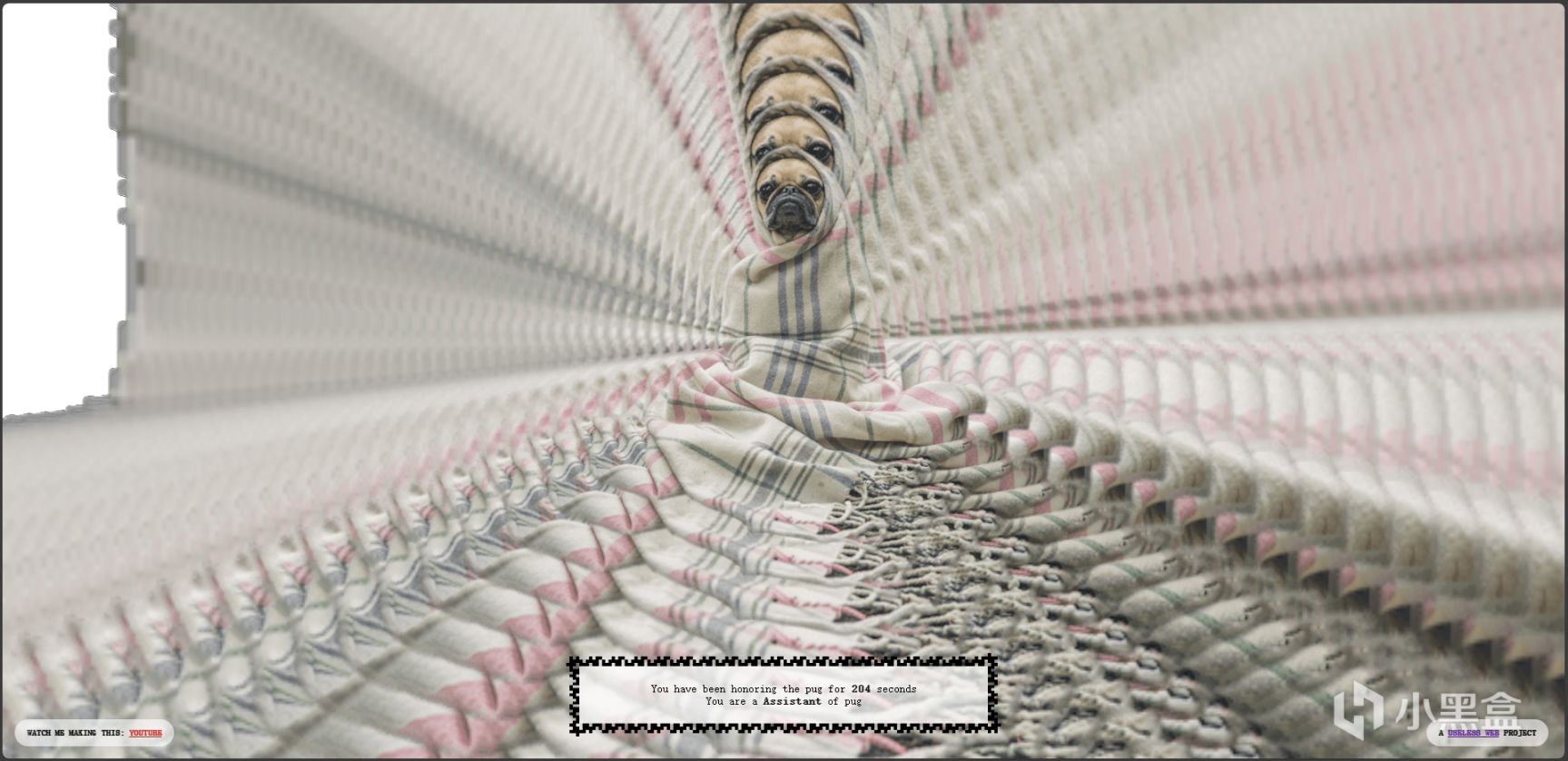 我一進網站就滿臉問號,一張披着浴巾的狗狗圖片,加上魔性的特效
