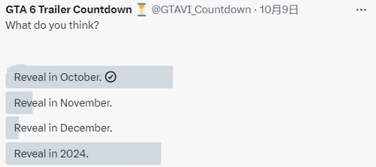 6.前有舅舅黨賭上職業生涯表示本作將於10月26日正式公佈;後有R星官推發佈疑似暗示的宣傳圖。粉絲社區被這波攪得人心不寧,也有圈內KOL發佈了投票,徵求玩家對本作發售時間的意見。