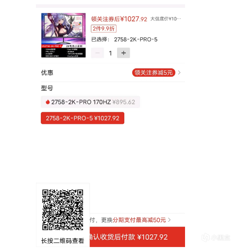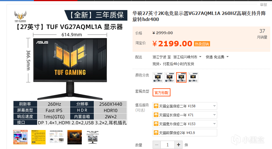 详细参数: 2560×1440分辨率,180Hz刷新率,98% DCI-P3色域,HDR10支持。有低蓝光模式和画面补偿,
