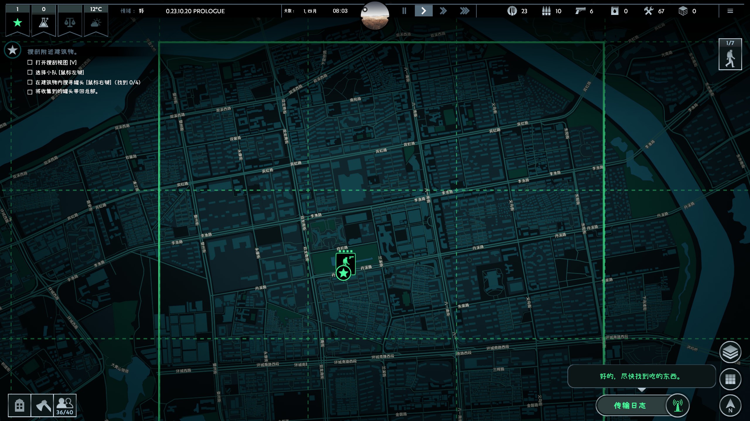 由于序章所开放的内容有限,目前只能选择固定的六座城市,并且安放总部的位置也是固定的,暂且没法选择出生区域。即便如此玩家可以在有限的八天时间内进行全图的自由探索,地图上所有的建筑物都是完全可交互的。因此玩家出生要做的第一件事——寻找生存物资。