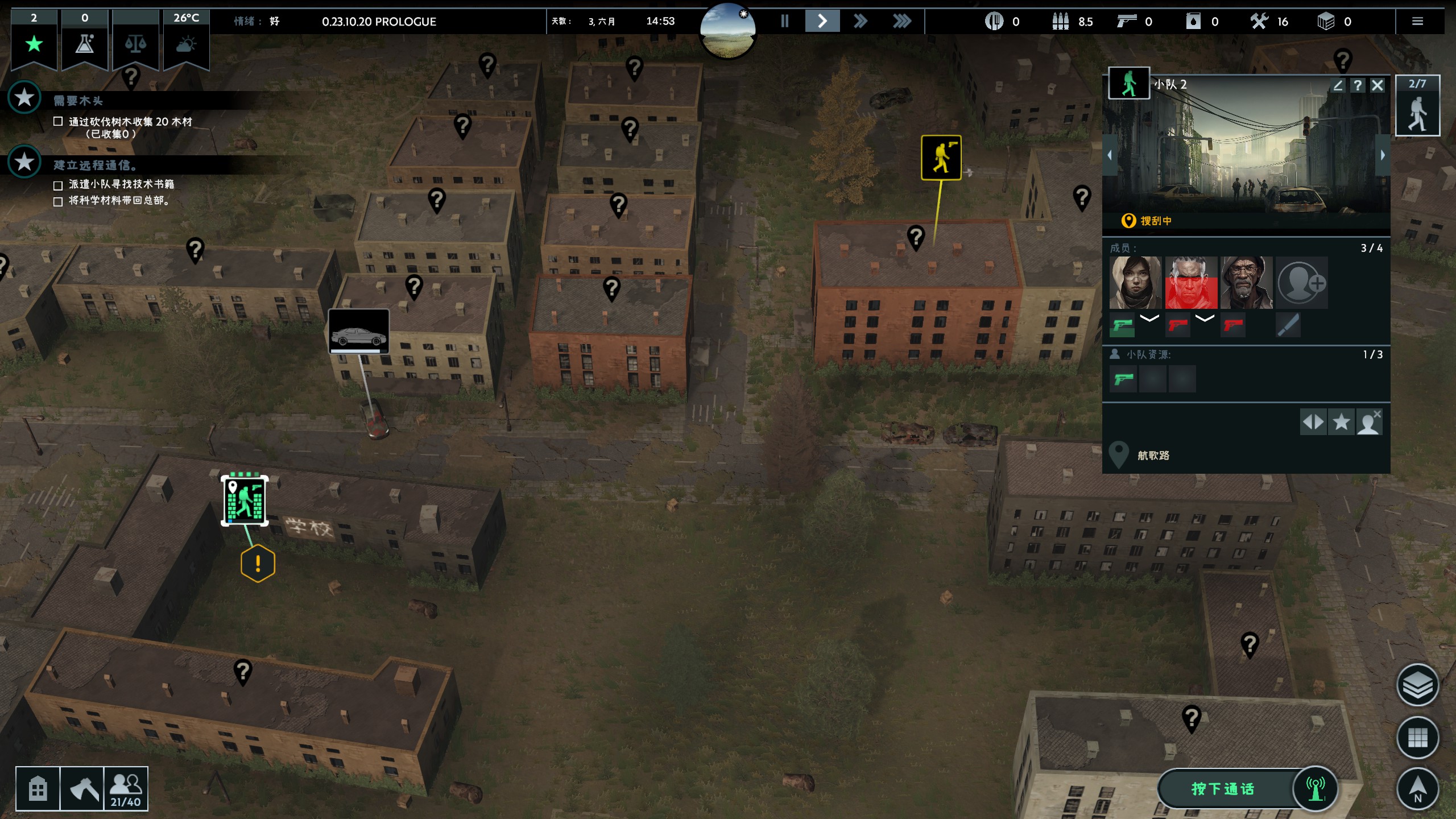 当然,你如果不想让几位手无寸铁的普通老百姓冒着被丧尸感染的风险去干活,那么在你派遣居民去进行拆除工作之前,就得安排一支武装小队事前先去确认该建筑是否存在丧尸。确保安全之后,你的居民就不会在干活的过程中突然被丧尸咬一口了——得要有十足的安全感才能顺利开展工作。