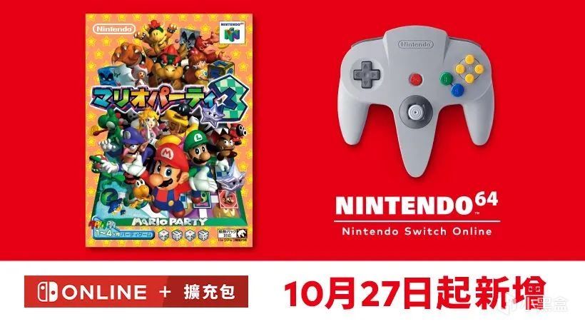 任天堂高级会员「Nintendo Switch Online + 扩充包」宣布将于10月27日,新增会免N64游戏《马力欧派对3》。