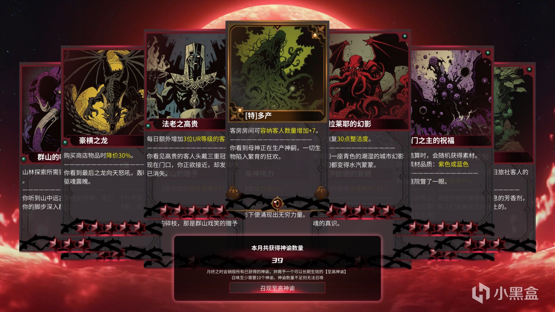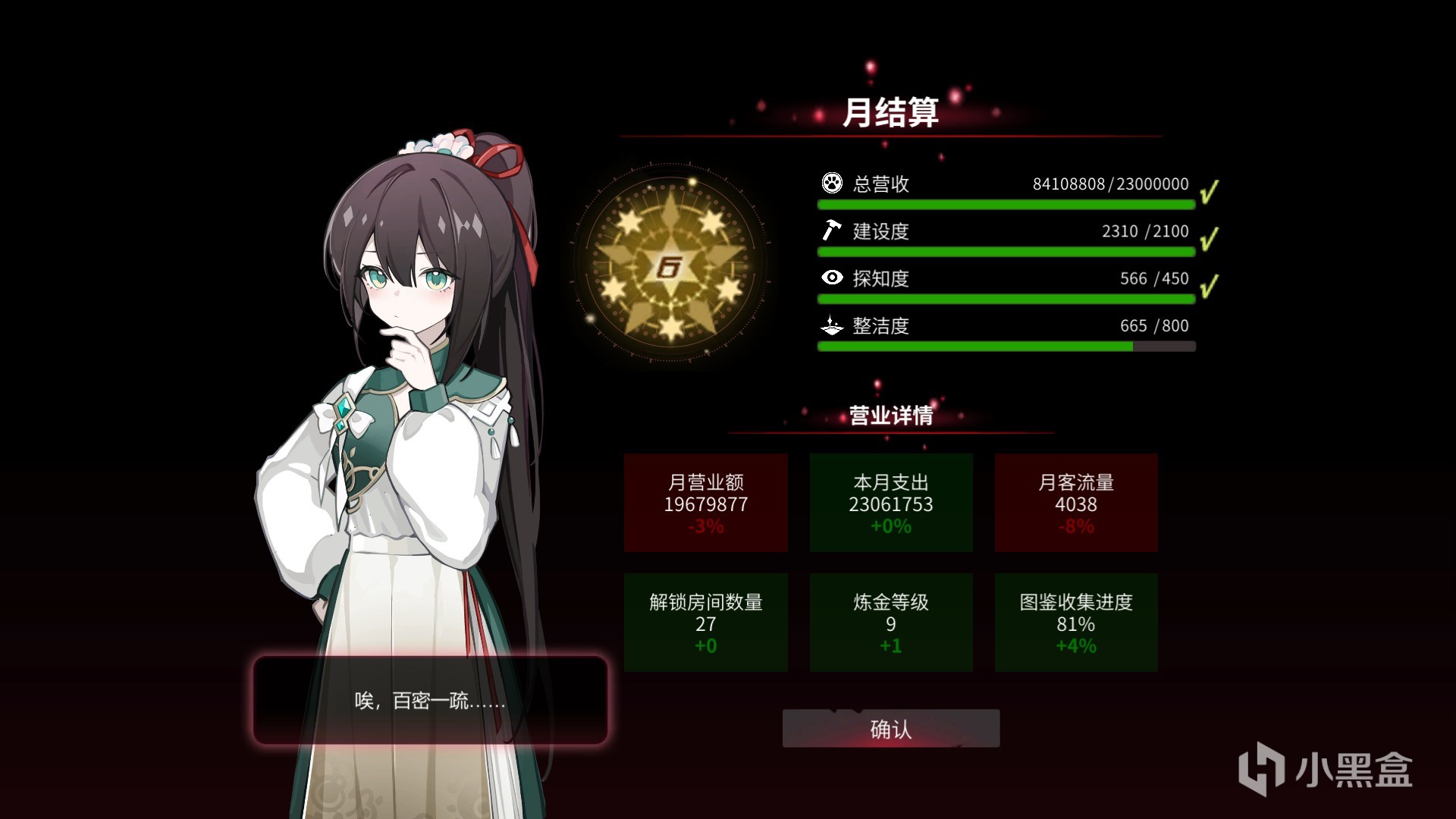 但遊戲在模擬經營上也仍需再下一點功夫。僅有一點的行動力,通常會使玩家前期有些手忙腳亂;如若能在第一次至高神諭時獲得夜晚行動力加點的能力,則相對好過一些。而問題顯然也並不止前期行動力缺乏,隨着旅館的不斷發展與庭院的逐漸擴大,玩家後期則逐漸顯得無所事事——替身探索山林至今未歸、餐廳倉庫裏堆積着成百上千的食材與金色食物,主角無事可幹或整日沉迷鍊金、或同後宮四人貼貼度日。