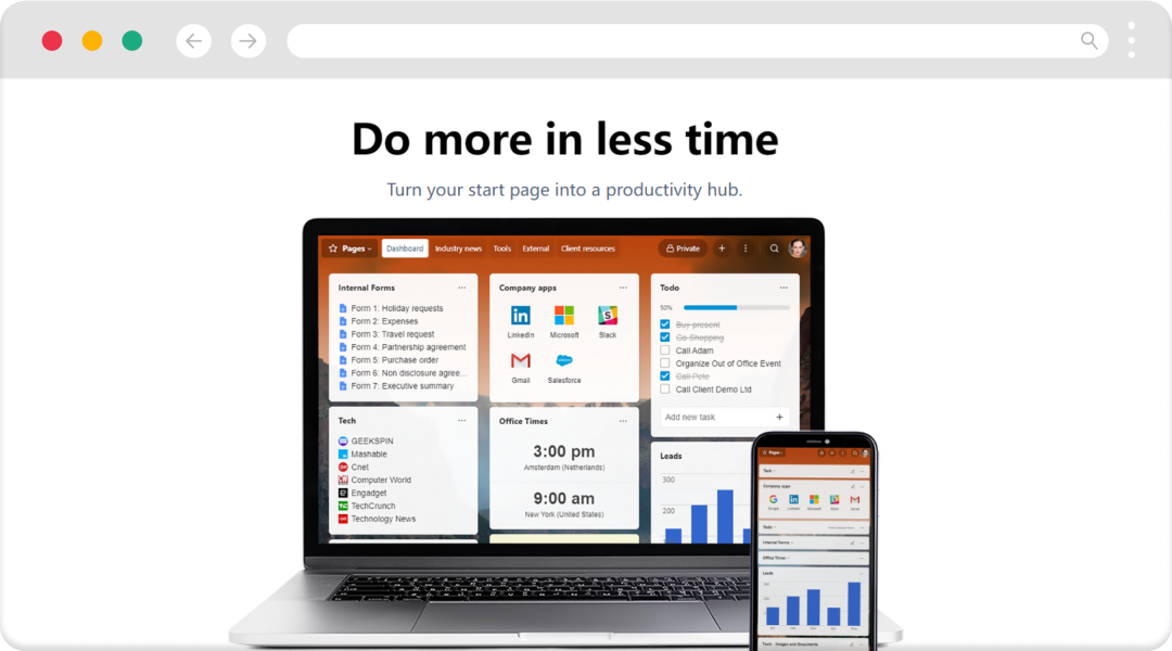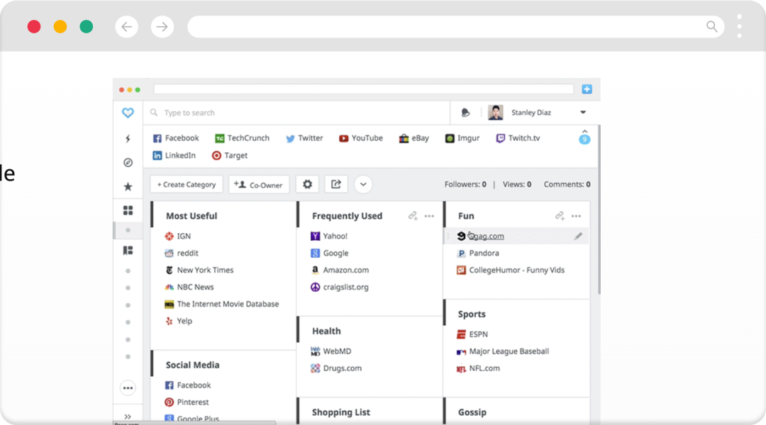 start.me擁有強大的書籤管理功能,您可以使用它來保存和組織您的書籤,和圖片展示的一樣,能夠以看板的形式展示、快速訪問最常訪問的網站,並且支持團隊共享書籤。