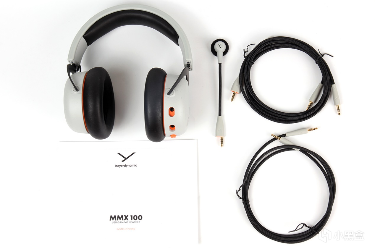 拜雅MMX100遊戲耳機包裝內部分爲上下兩層,上層放置着耳機本體和麥克風,下層黑色紙盒內放着使用說明書和兩條連接線。