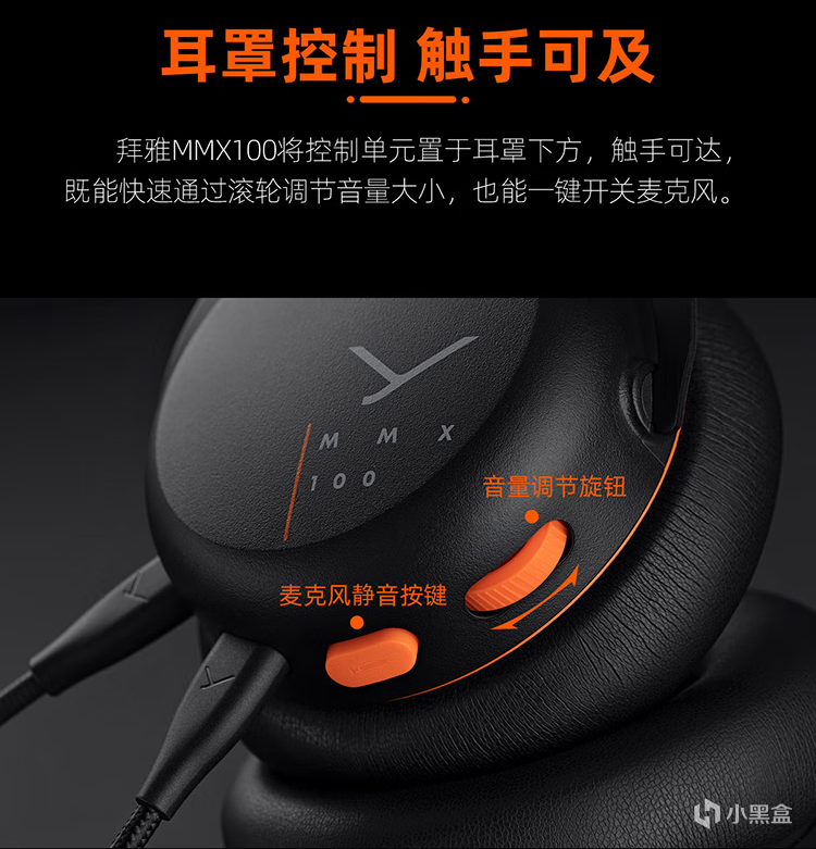 拜雅MMX 100的線控功能直接集成在耳罩上。耳機連接線後方即是麥克靜音按鍵,再往後則是音量調節撥輪。好處是以後再也不用因爲線控損壞而去換線了,壞處是這回線控壞了可能就得換耳機了。 當然如果您像我一樣習慣用外置聲卡的數字旋鈕來調節音量大小,那麼完全可以忽視這一點。
